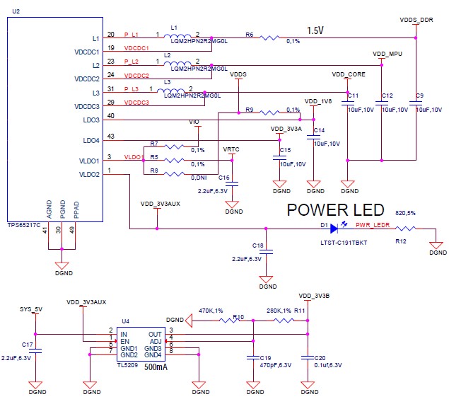 The VDD_3V3A rail is supplied by the TPS65217C and provides the 3.3V for the processor rails and can provide up to 400mA.