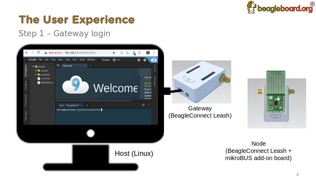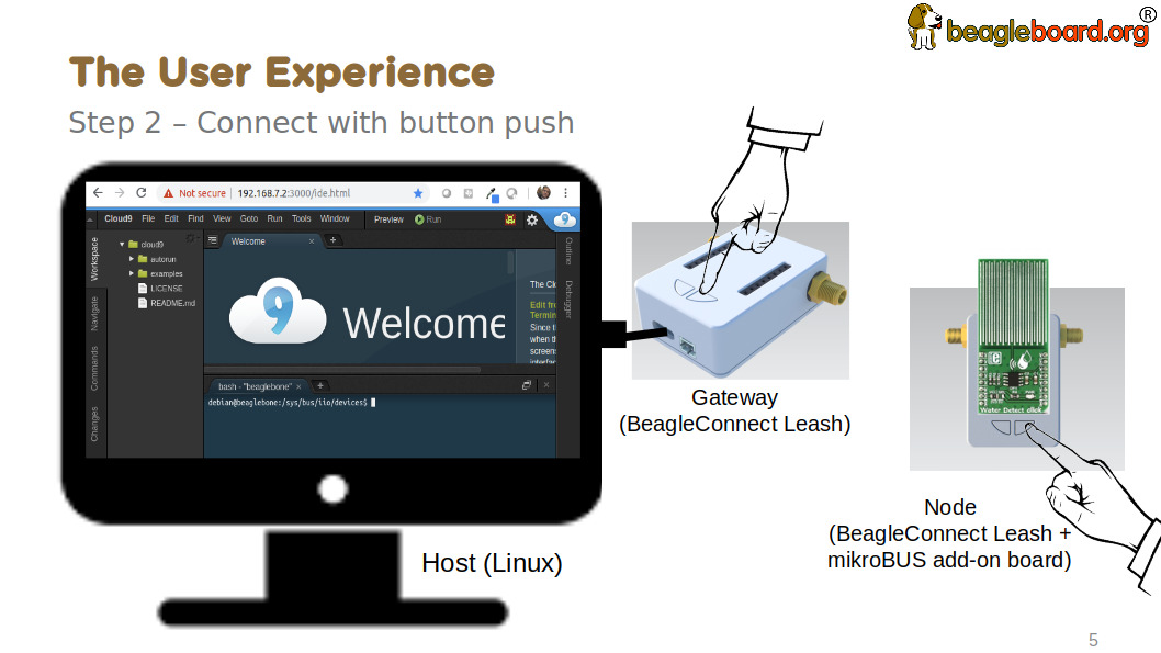 The Linux host will need to run the BeagleConnect™ management software, most of which is incorporated into the Linux kernel. Support will be provided for BeagleBoard and BeagleBone boards, x86 hosts, and Raspberry Pi.