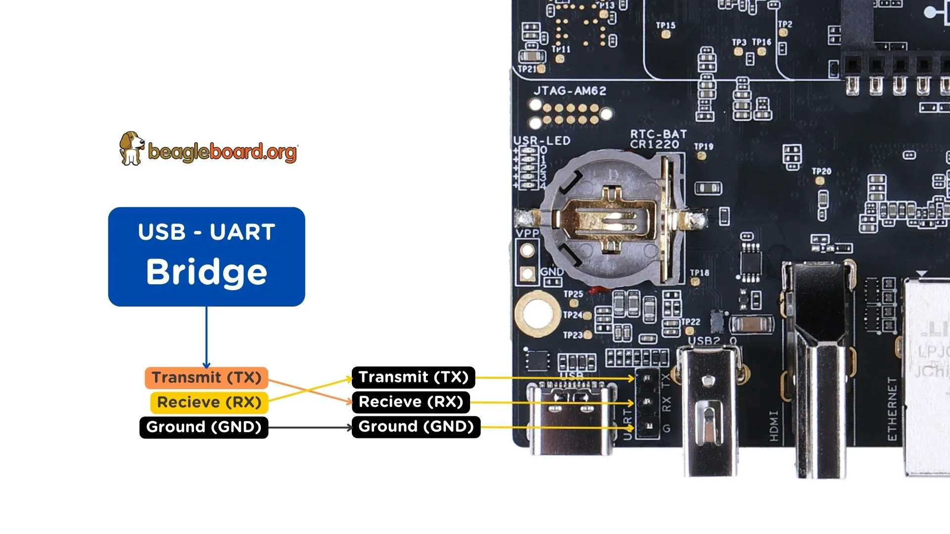 To see the board boot log and access your BeaglePlay’s console you can connect a USB-UART