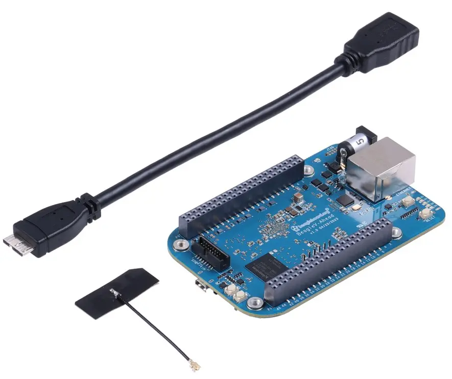 A super-speed micro-B (male) to USB A (female) OTG cable included in the box can be used to connect USB gadgets to your BeagleV-Ahead board. When you do this, you’ll be required to power the board via Barrel jack.