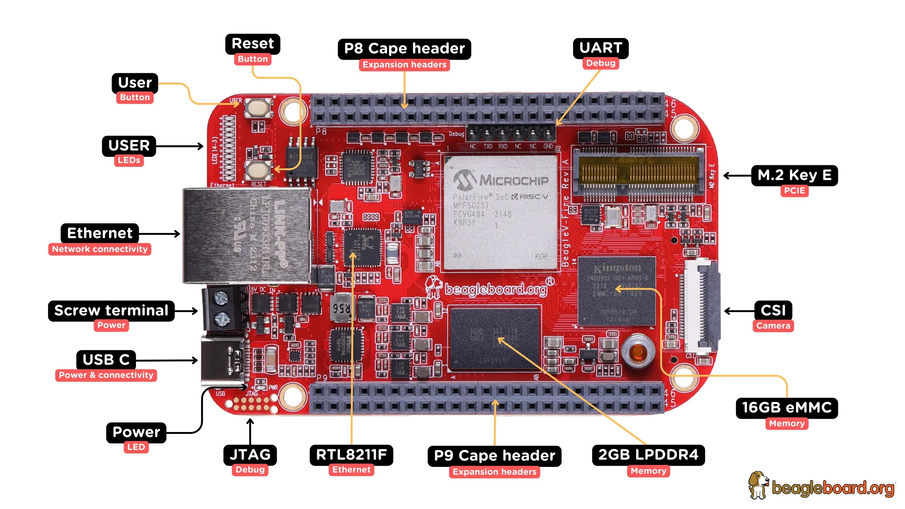 BeagleV®-Fire is a revolutionary SBC powered by the Microchip’s PolarFire® MPFS025T System on Chip (SoC) with 4x RV64GC Application cores, 1x RV64IMAC monitor/boot core, and FPGA fabric. BeagleV®-Fire opens up new horizons for developers, tinkerers, and the open-source community to explore the vast potential of RISC-V architecture and FPGA technology. It has the same P8 & P9 cape header pins as BeagleBone Black allowing you to stack your favourite BeagleBone cape on top to expand it’s capability. Built around the powerful and energy-efficient RISC-V instruction set architecture (ISA) along with its versatile FPGA fabric, BeagleV®-Fire SBC offers unparalleled opportunities for developers, hobbyists, and researchers to explore and experiment with RISC-V technology.