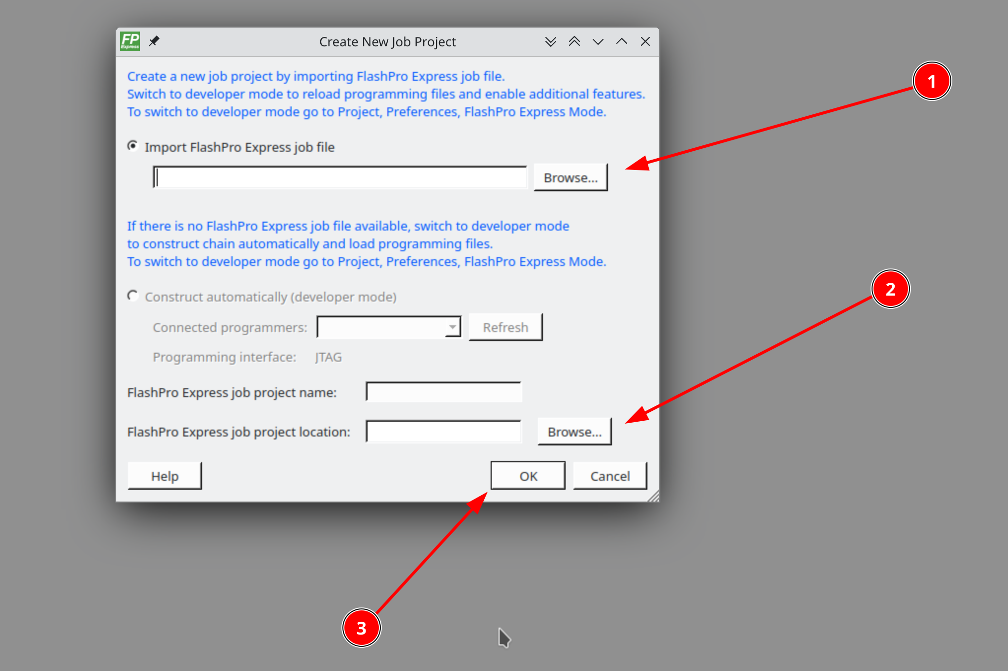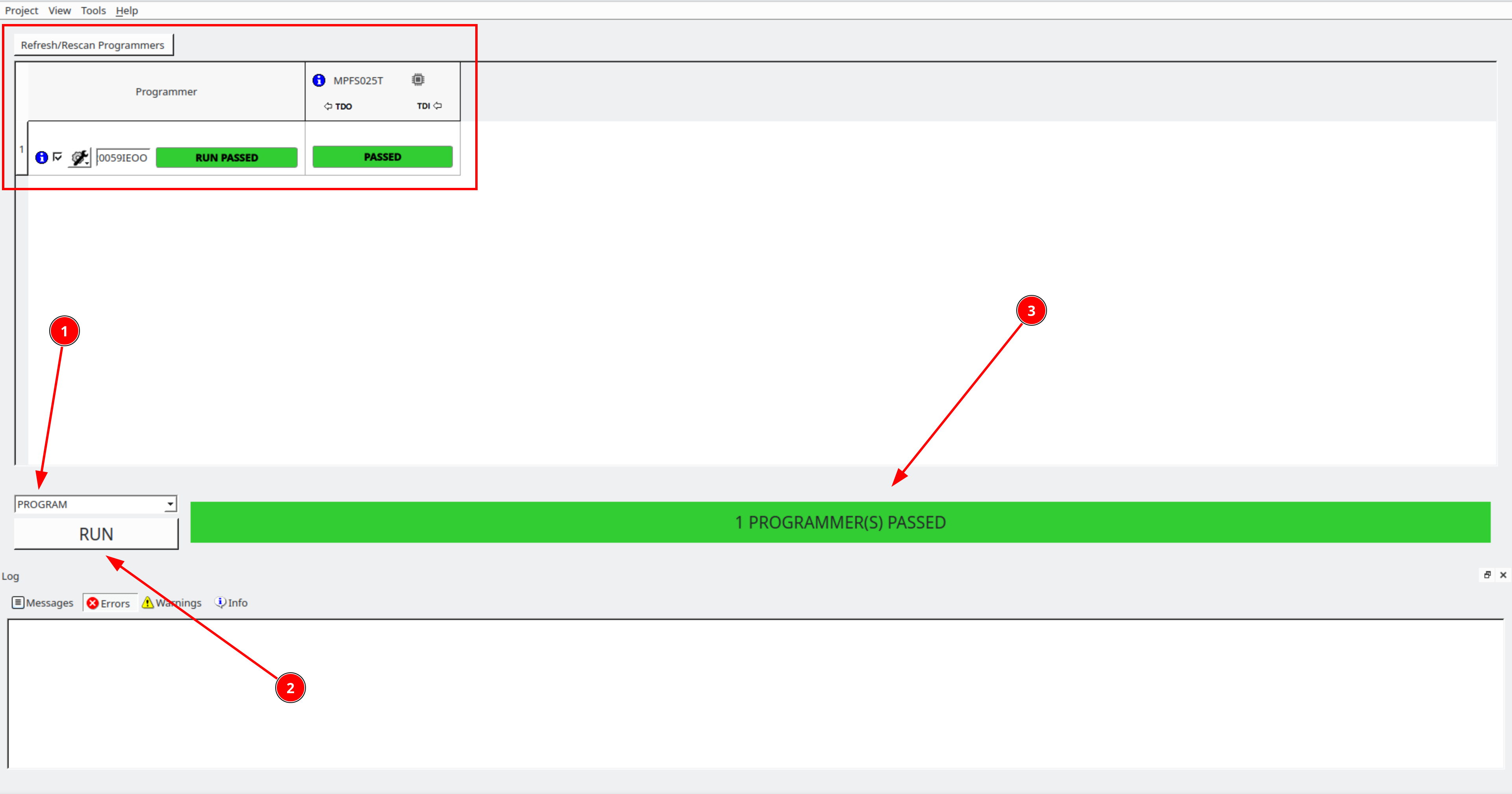 If your FlashPro5/6 is connected properly you’ll see the window shown below: