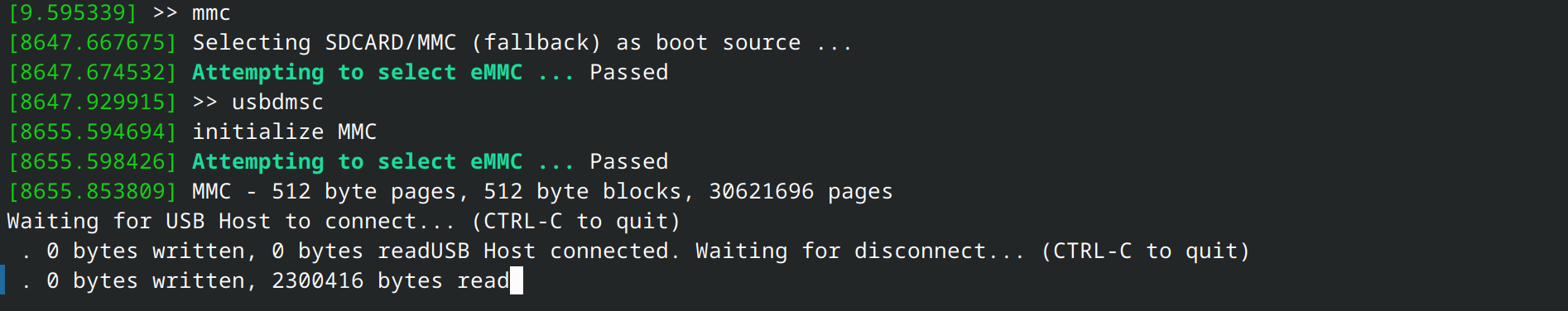 Fig. 596 HSS commands to show eMMC as mass storage#
