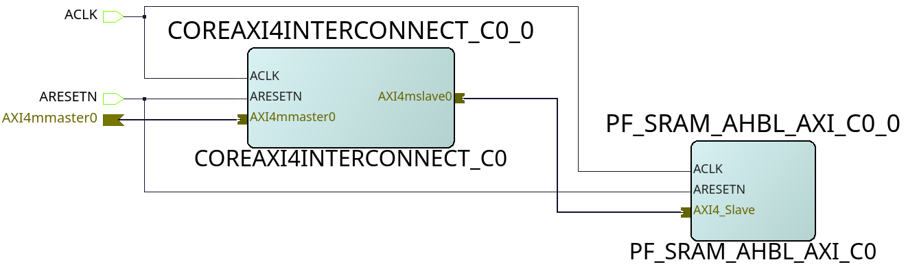 The MSS includes three 64-bit AXI FICs out of which FIC0 is used for data transfers to/from the fabric. FIC0 is connected as both master and slave. For usage of AXI peripherals, an example is also provided by microchip in their Polarfire SoC Linux examples. The example here takes reference from the AXI LSRAM example.