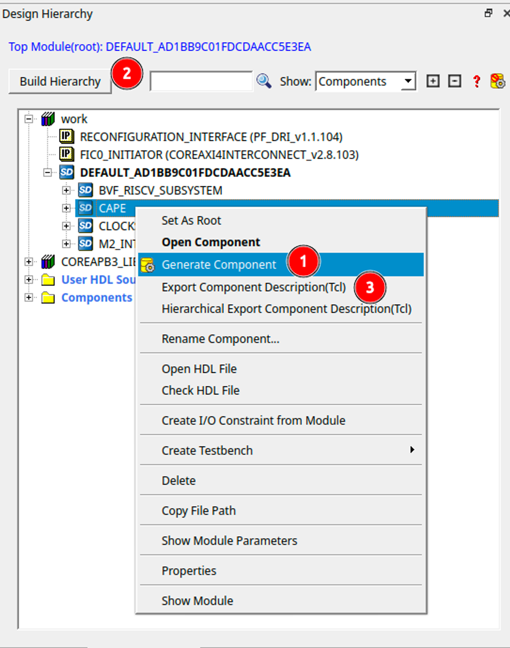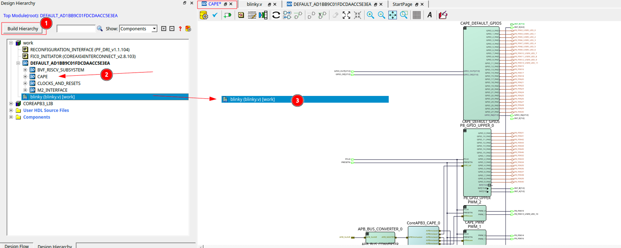 Design Hierarchy view to look at all Smart Design components. Here, all the gateware components