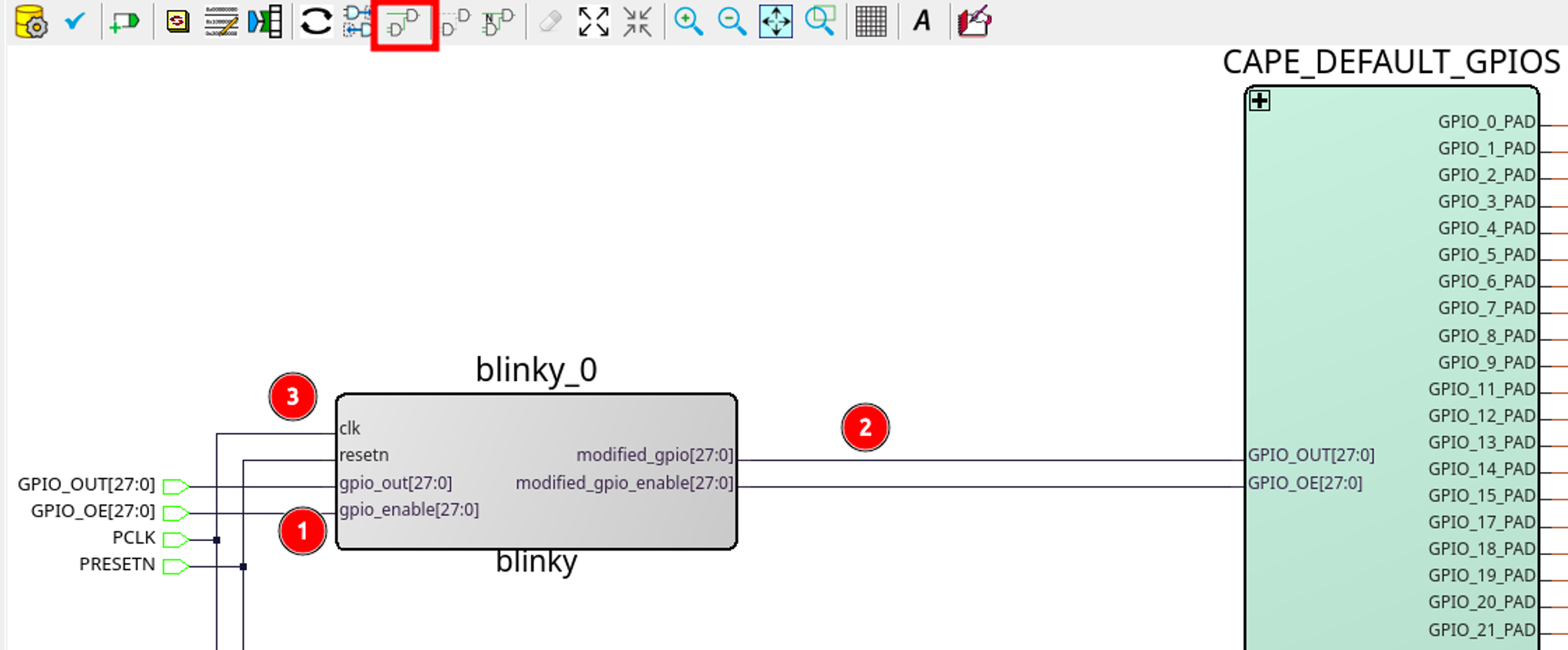 GPIO_OUT and GPIO_OE to the CAPE_DEFAULT_GPIOS module.GPIO_OUT and the GPIO_OE terminals of the capegpio_out and the gpio_enable pins respectively.CAPE_DEFAULT_GPIOS module.