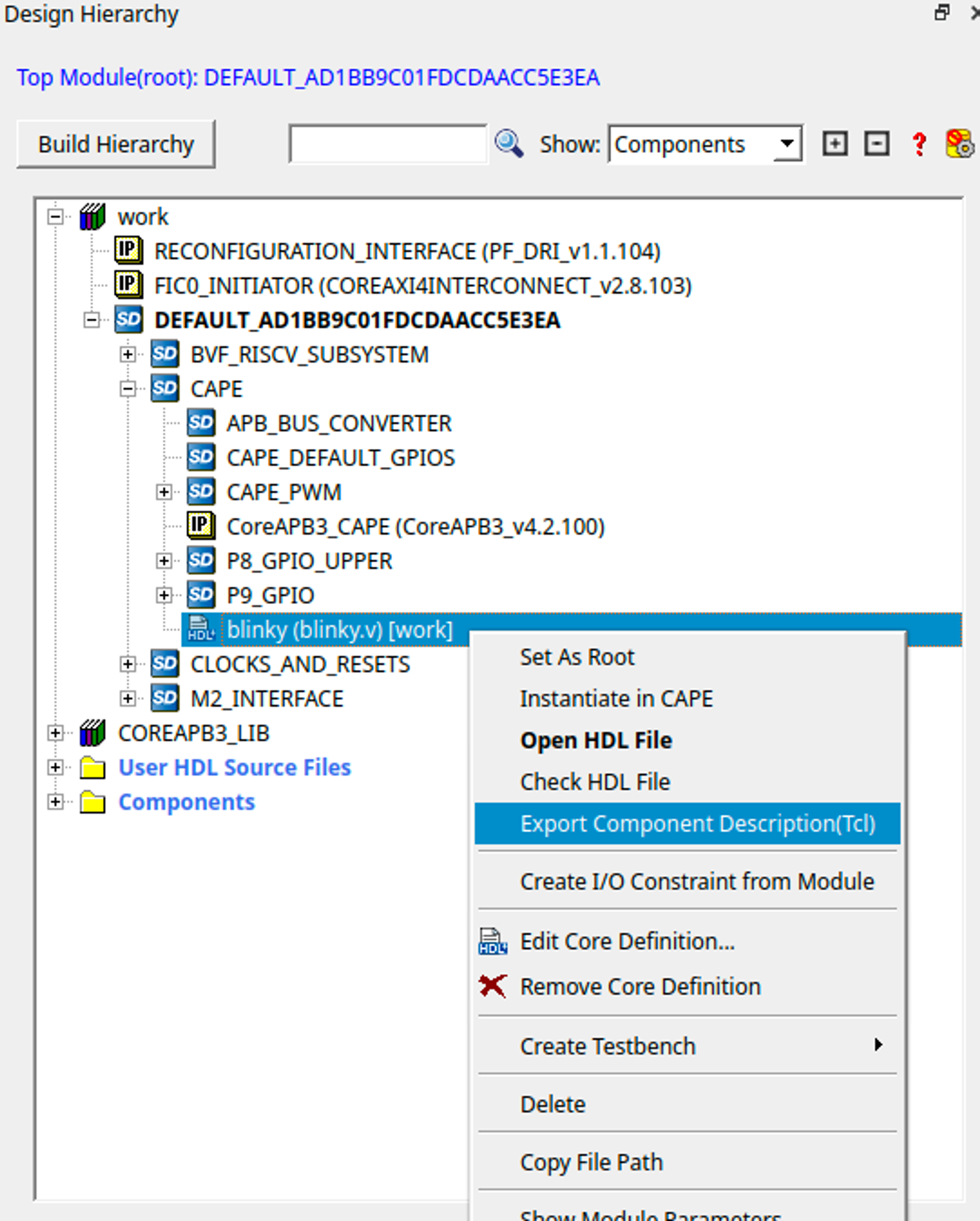 cp blinky.tcl ~/gateware/sources/FPGA-design/script_support/components/CAPE/DEFAULT/blinky_config.tcl