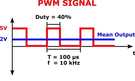 PWM or Pulse Width Modulation, is a technique used to control the amount of power delivered to an electronic device by breaking up the power signal into discrete ON and OFF periods.